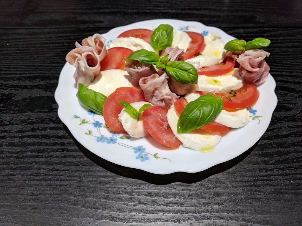This dish is very simple to make, yet fresh basil leaves and olive oil give a nice harmony. I recommend not adding any additional salt as processed meat (ham) and cheese already contain salt. Also, without additional salt, you can fully enjoy the taste and flavour of the ingredients. You might feel the dish is bland in the beginning and be tempted to add some salt, however, if you keep trying to go for lower-salt dishes, the human tongue adjusts its sense. You may try to reduce the salt intake by reducing additional salt or the consumption of ready-made meals. At some point, you will start feeling more ingredients’ tastes and start feeling that ready-made food has a really thick taste 🙂 This is my own experience, but there are some studies as well supporting this (Beauchamp et al, Annals of Internal Medicine, 1983 May;98(5 Pt 2):763-9., Blais et al, American Journal of Clinical Nutrition. 1986;44(2):232–243. , Mattes, American Journal of Clinical Nutrition. 1997;65(2 (Supplement)):692S–697S., Bertino et al, American Journal of Clinical Nutrition. 1982;36(6):1134–1144 ). I understand that everyone has a different tongue, but trying is free. So why don’t you try?