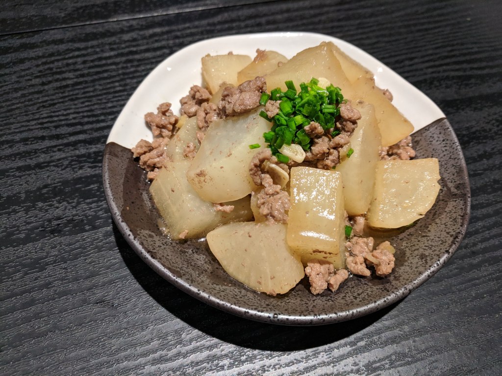 Description: One of the nice Japanese flavour side dishes. This dish really goes well with steamed rice and miso soup which are traditional in a Japanese meal. Dashi and meat tastes are well infused in daikon radish.