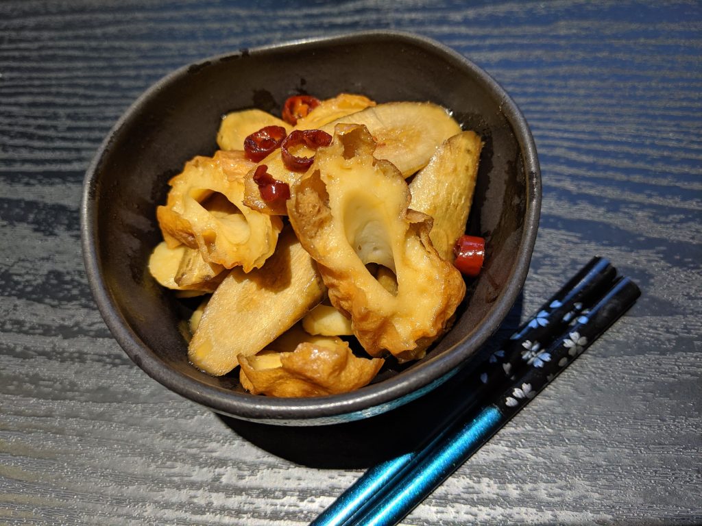 Burdock root is generally known as “greater burdock” or “gobo: 牛蒡/ゴボウ)”, scientifically as “Arctium lappa” and it is an underground tuber of the greater burdock plant. Burdock roots are also low in sugar, fat, sodium and moderately low calories for vegetables (72 kcal per 100g: USDA) and a good source of potassium. Their skin is a dark brown colour and looks like a tree branch, and tastes crunchy and fibrous. Once it is exposed to the air after cutting, it starts oxidising and becomes pink, dark or grey. To avoid this, it is recommended to soak the slices in water or vinegar, although it is better not to soak for too long to prevent losing nutrients.