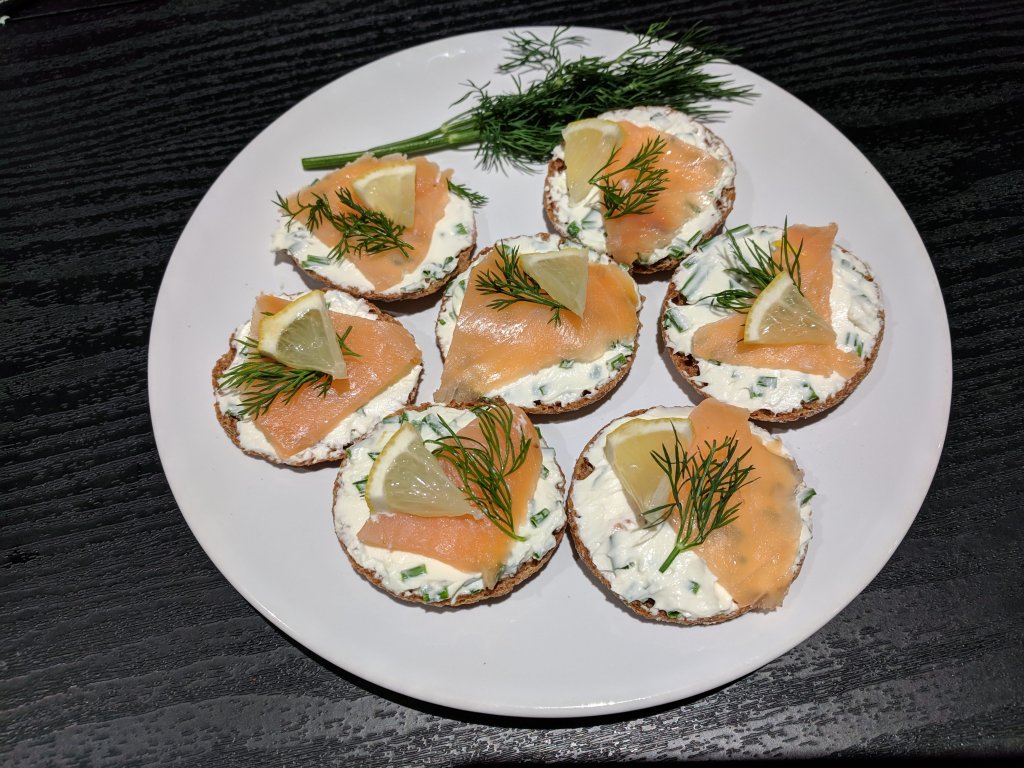 - Smoked salmon – cut to a bite-size 100g