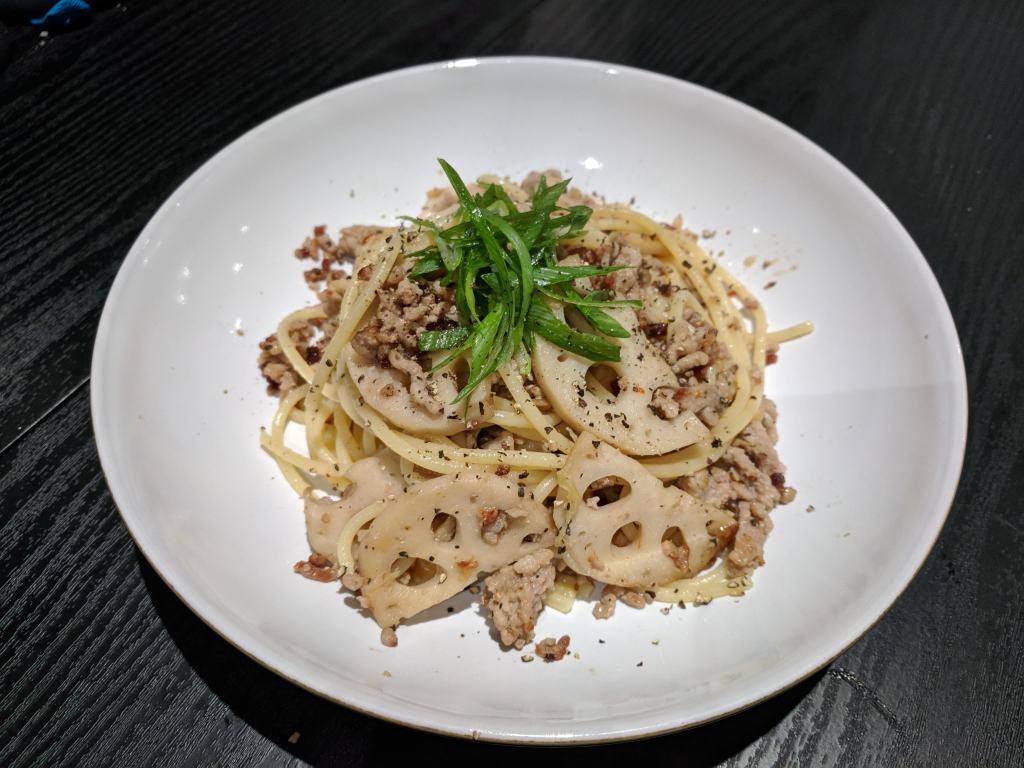 This dish is one of the healthy pasta which would make me feel full and can be a good starter, side or main dish. It contains protein, fat, carbs, essential vitamins and minerals. This is one of the best ways to eat vegetables and achieve a balanced diet. Eating this meal helps us to increase fibre intake without boosting calories. Lotus roots are a key ingredient here. They are also low in sugar, and fat and moderately low calories for a vegetable (74 kcal per 100g).