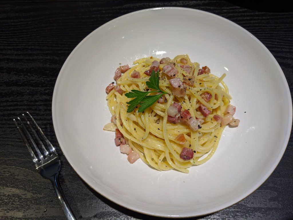 Description: Simple yet delectable pasta. Rich flavour of pancetta is irresistible. Additional white wine gives a nice flavour to pasta. This can be a fantastic midweek meal or weekend treat meal.