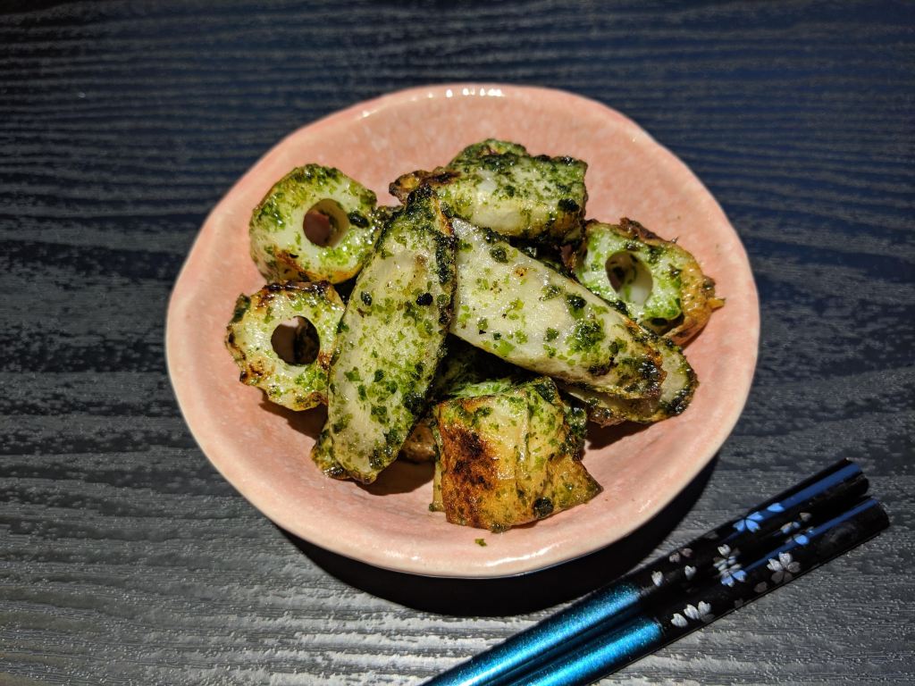 Description: No deep fry. Only 1 spoon of oil can make a great side dish. This goes really well with white wine or sake.