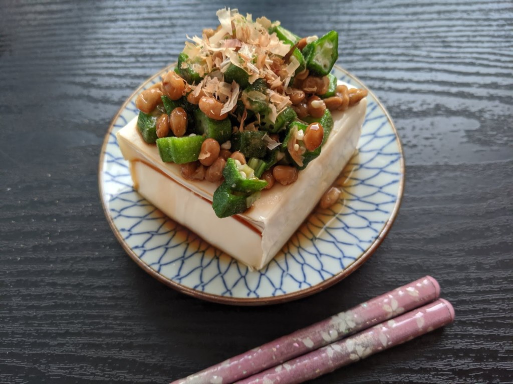 2. In a bowl, add natto and mix well. Then add the okra and mix again.