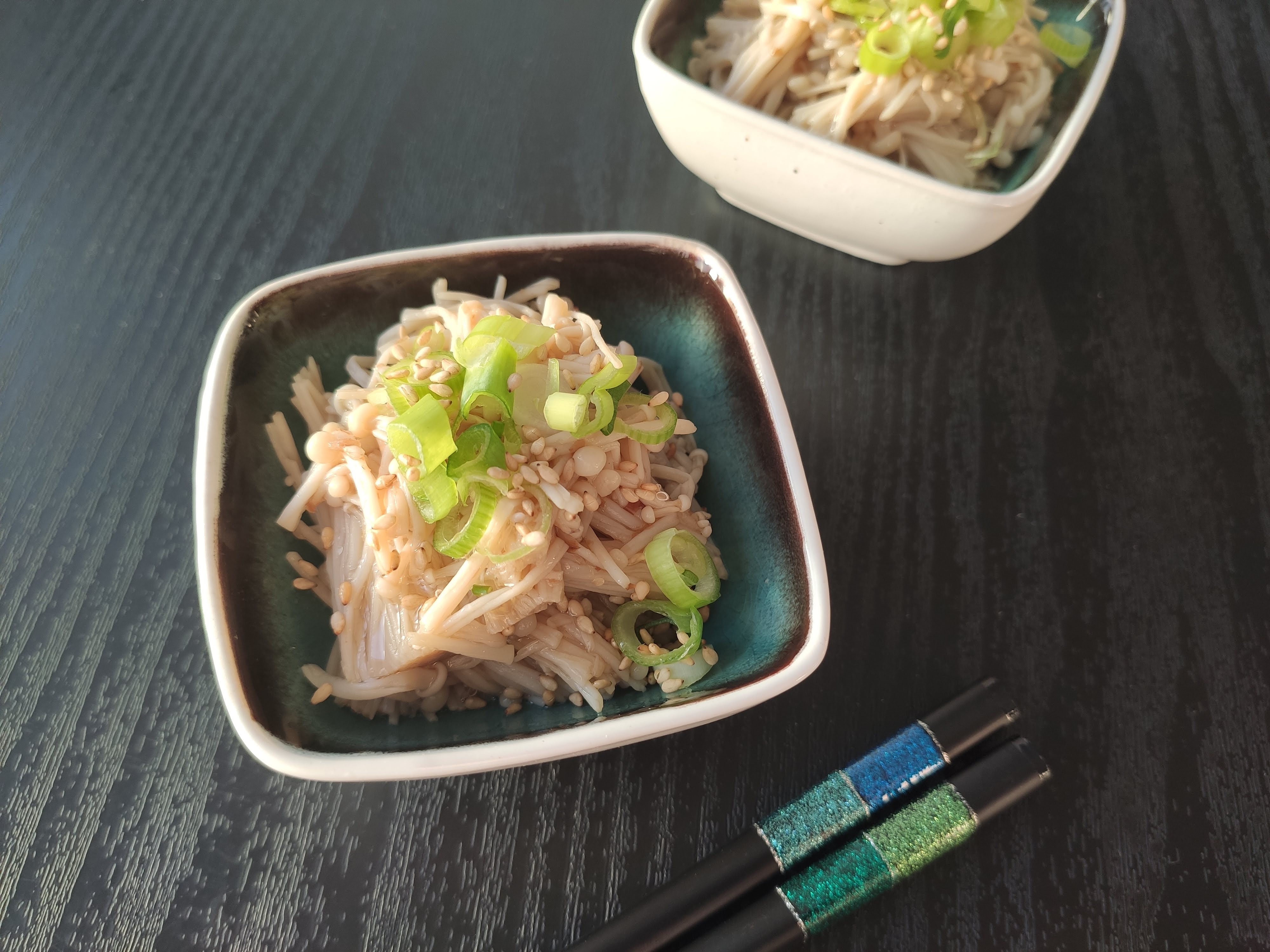 Description: Simple and tasty enoki mushroom namul. If you chill them in the fridge before serving, they will be refreshing and crispy.